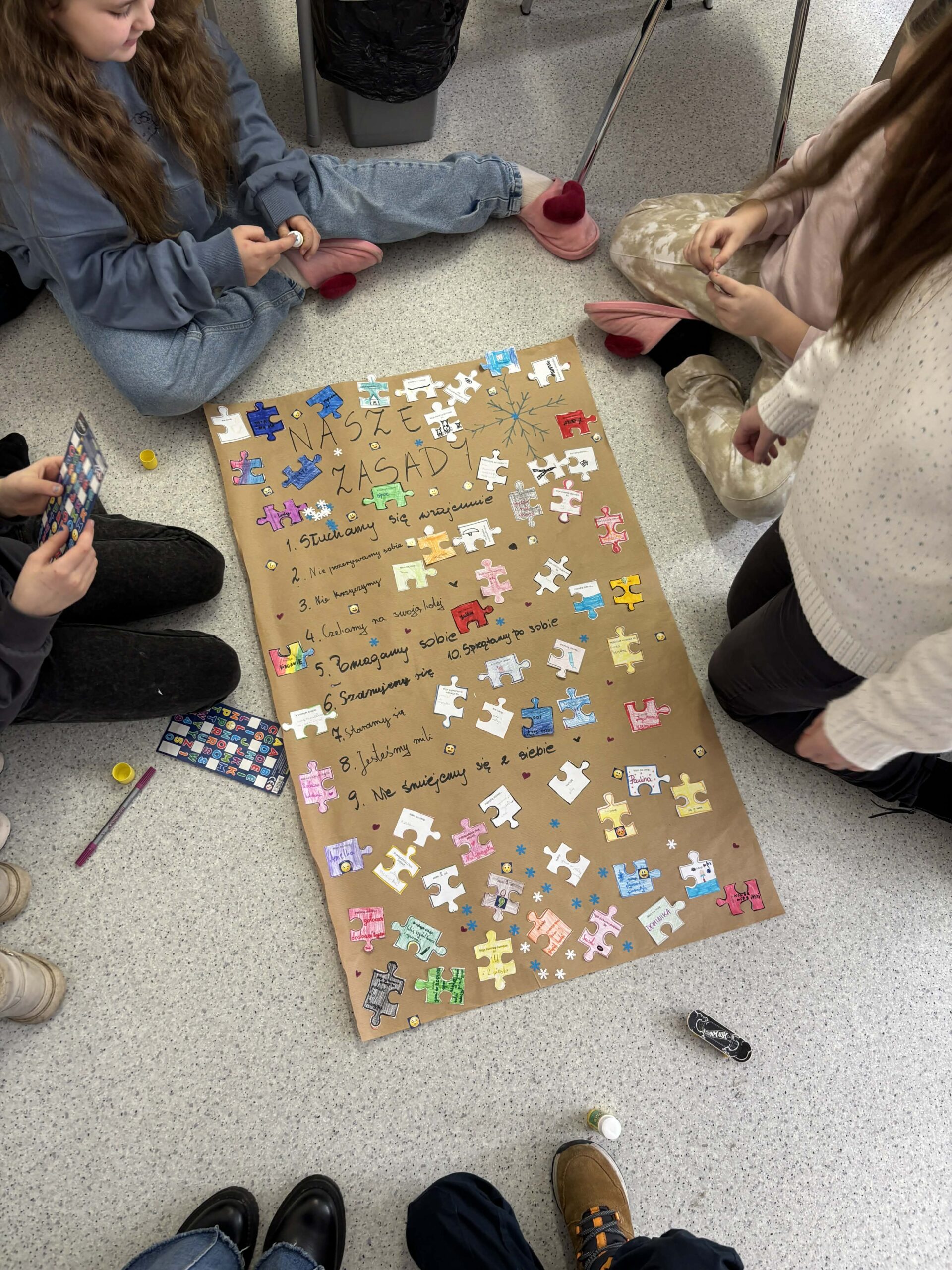 W ramach zajęć wybrani pracownicy Poradni przeprowadzili szereg spotkań, podczas których dzieci miały okazję ciekawie spędzić czas, doskonaląc swoje umiejętności społeczne, wzbogacając wiedzę na temat emocji, usprawniając zdolności manualne oraz rozwijając wyobraźnię i kreatywność. Szczególny nacisk położono na doskonalenie umiejętności współpracy w grupie, komunikacji oraz wzajemnego wsparcia.
